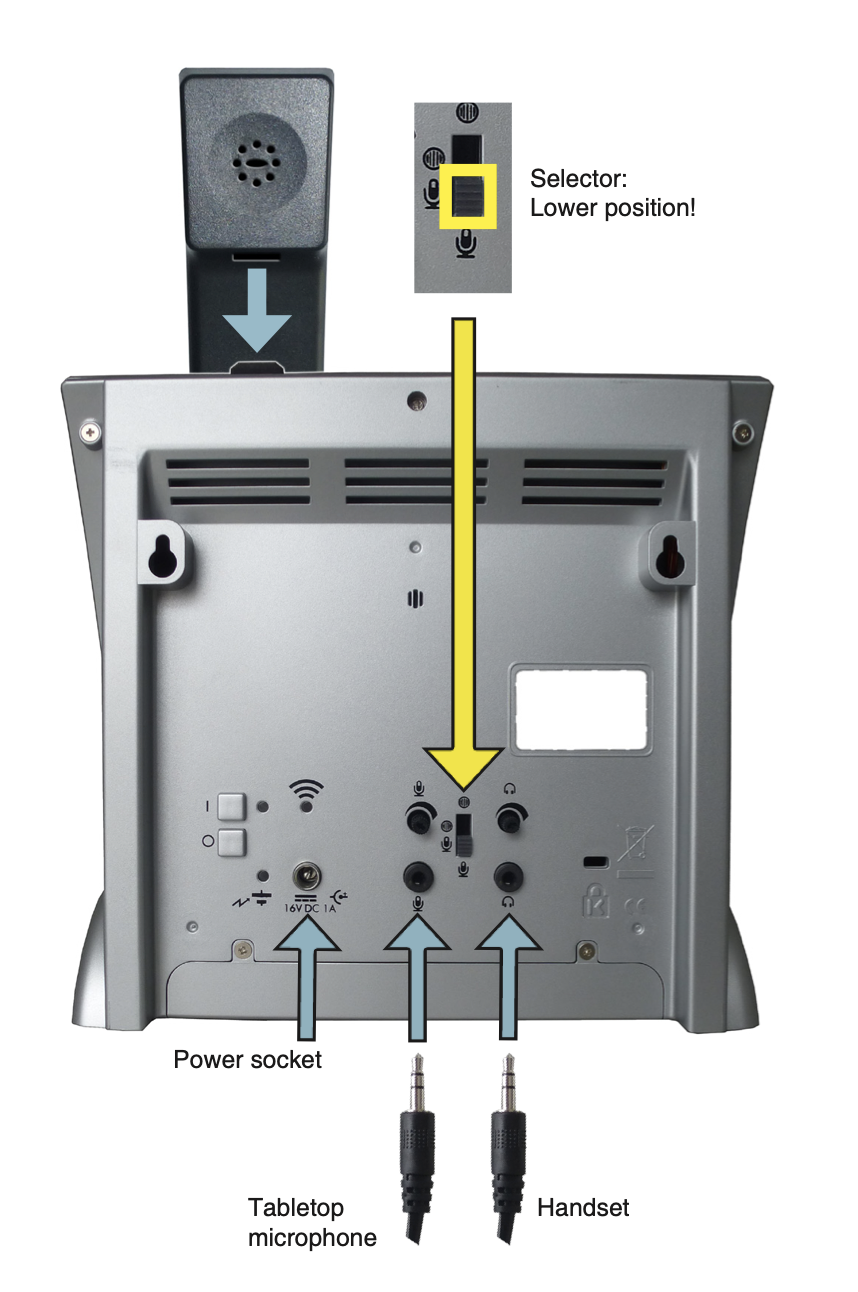 Uwaga: Przełącznik wyboru mikrofonu ustaw w dolnej pozycji (mikrofon zewnętrzny), aby uniknąć sprzężenia akustycznego.