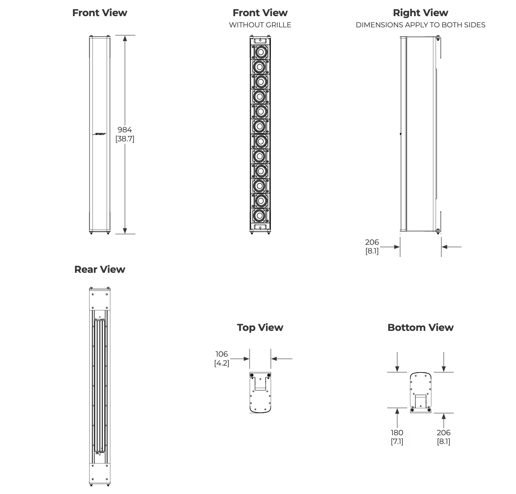 Przyjazna instalatorom konstrukcja modułowa pozwala łatwo łączyć do trzech jednostek w jeden zestaw. Wydłużenie linii głośników zwiększa zasięg, poprawia kontrolę niskich częstotliwości oraz rozszerza możliwości funkcji dual-beam – bez konieczności zamawiania niestandardowych modułów czy skomplikowanej logistyki transportowej. Dzięki technologii beam-steering kolumny można montować na różnych wysokościach, nie tylko na poziomie uszu, jak w tradycyjnych kolumnach liniowych.