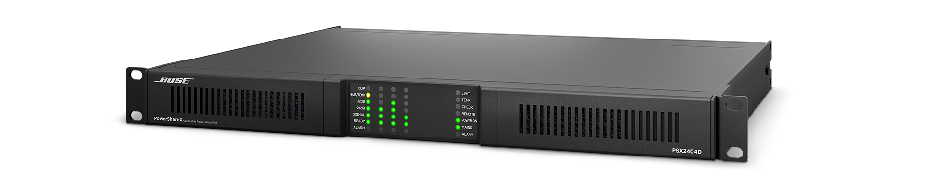 Bose PowerShareX PSX2404D to czterokanałowy, inteligentny wzmacniacz o mocy 2400 W, zaprojektowany z myślą o profesjonalnych systemach instalacyjnych Bose. Dzięki wbudowanemu DSP oraz integracji z oprogramowaniem ControlSpace Designer, oferuje natychmiastowy dostęp do zoptymalizowanych presetów głośnikowych i pełną współpracę w ramach ekosystemu Bose (procesory, kontrolery, głośniki). Projektowanie, konfiguracja i eksploatacja stają się prostsze i szybsze, co pozwala oszczędzić czas i zapewnić najwyższą jakość dźwięku.