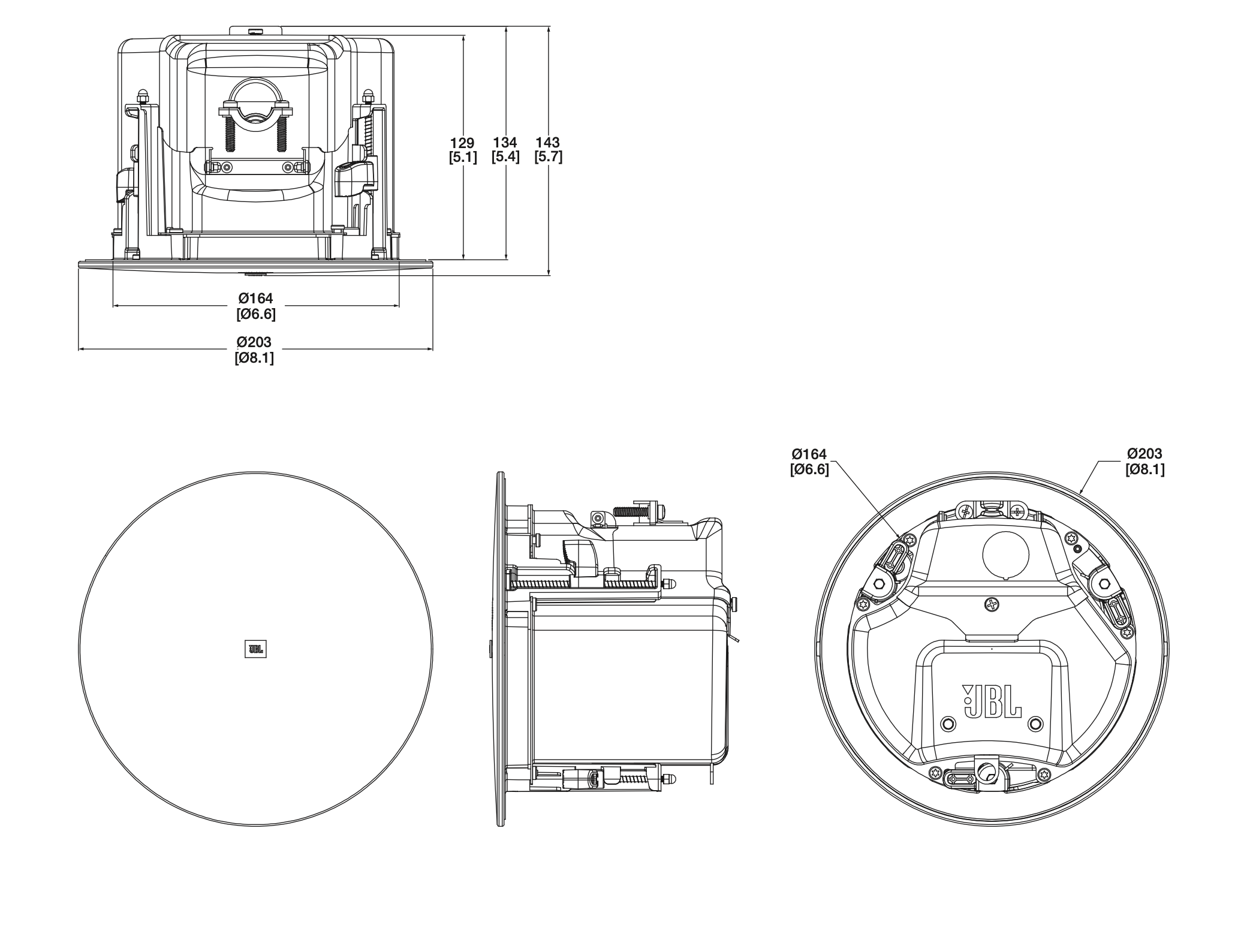 Głębokość od dolnej krawędzi sufitu do górnej części obudowy: 134 mm (5,4”)