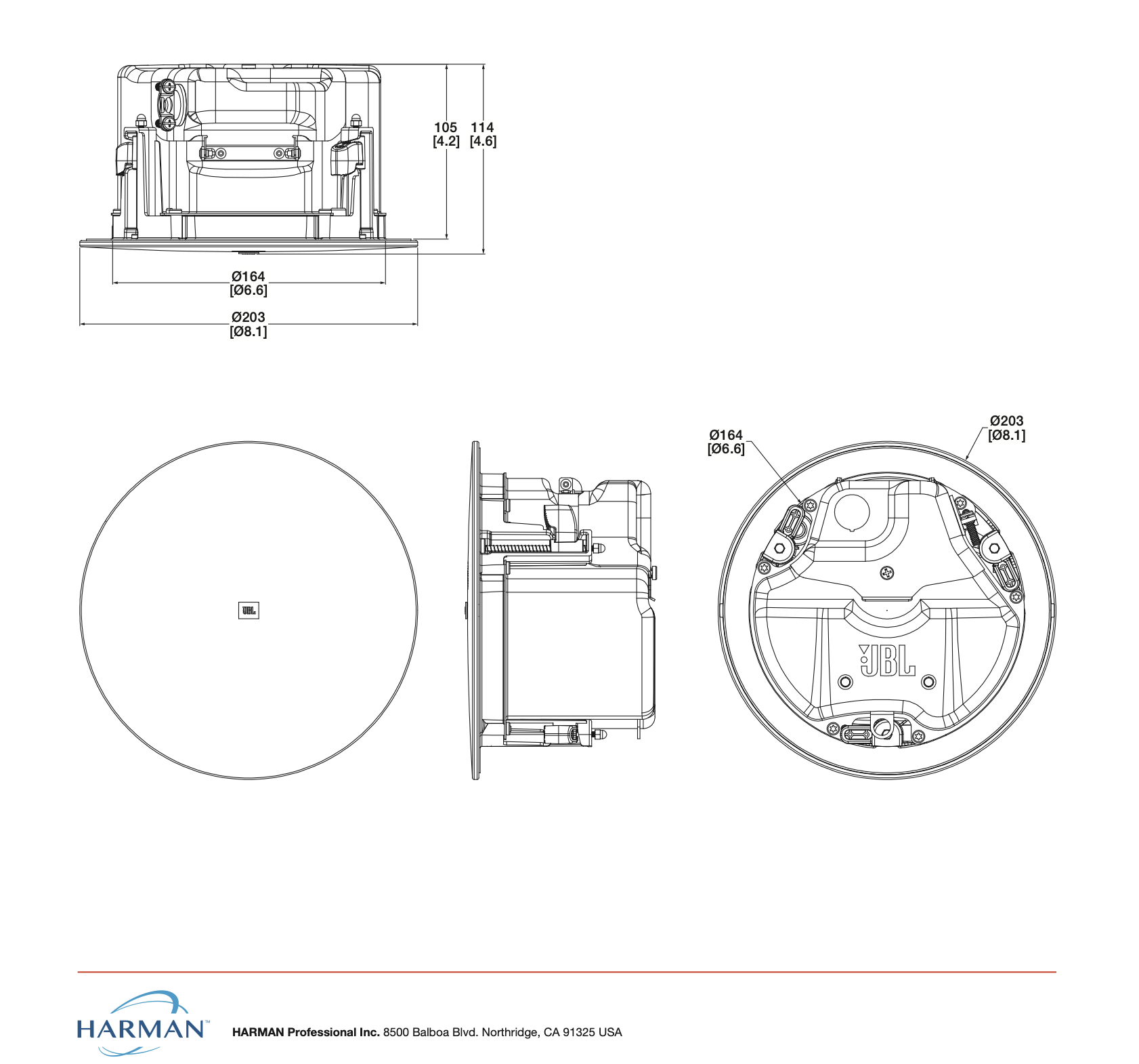 Średnica otworu montażowego: 168 mm (6,6”)