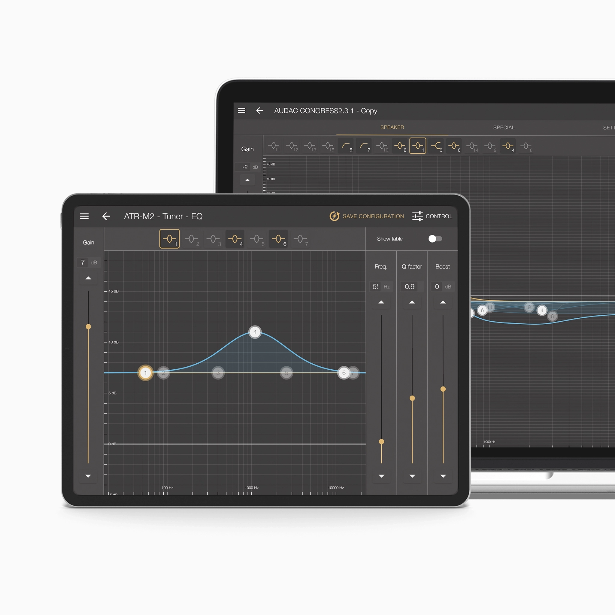 Kompatybilność z AUDAC Touch™ sprawia, że konfiguracja i obsługa głośników staje się wyjątkowo prosta i bezpieczna – zarówno dla instalatora, jak i użytkownika końcowego. System oferuje kompletną bibliotekę presetów głośnikowych, przygotowanych specjalnie pod konkretne modele i zastosowania.