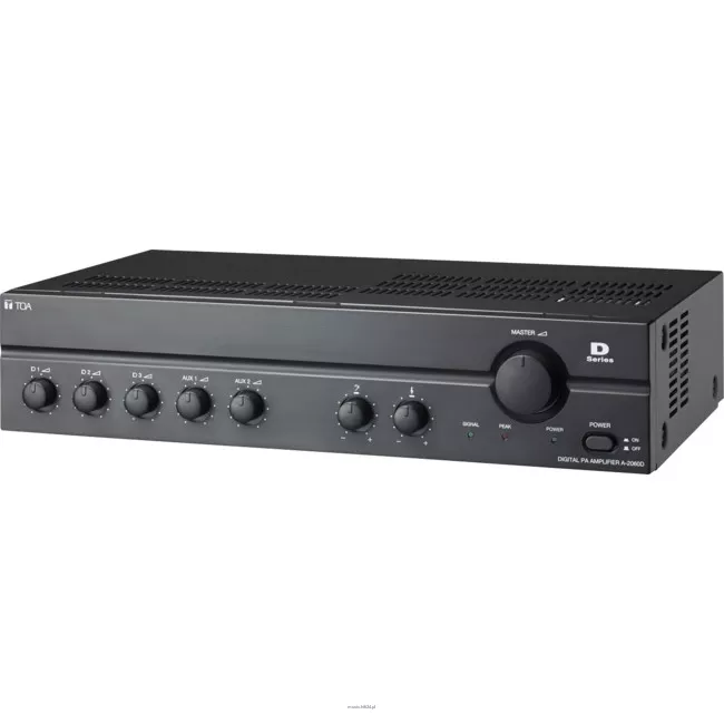 A-2000D to seria wzmacniaczy cyfrowych o wysokiej wydajności przeznaczonych do nadawania komunikatów i / lub muzyki w tle w szkołach, sklepach detalicznych, biurach, fabrykach, domach modlitwy i dużych salach konferencyjnych. 3 wejścia mikrofonowe Jack.