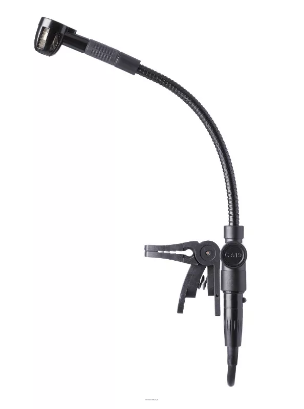 Mały mikrofon pojemnościowy na krótkiej gęsiej szyi.