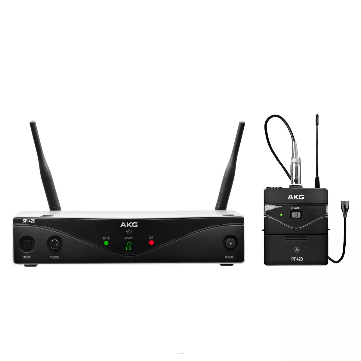 WMS420 Presenter Set to profesjonalny wielokanałowy system bezprzewodowy. Zawiera, bezprzewodowy nadajnik bodypack PT420 bezprzewodowy odbiornik stacjonarny SR420 oraz mikrofon z klipsem C 417 L.