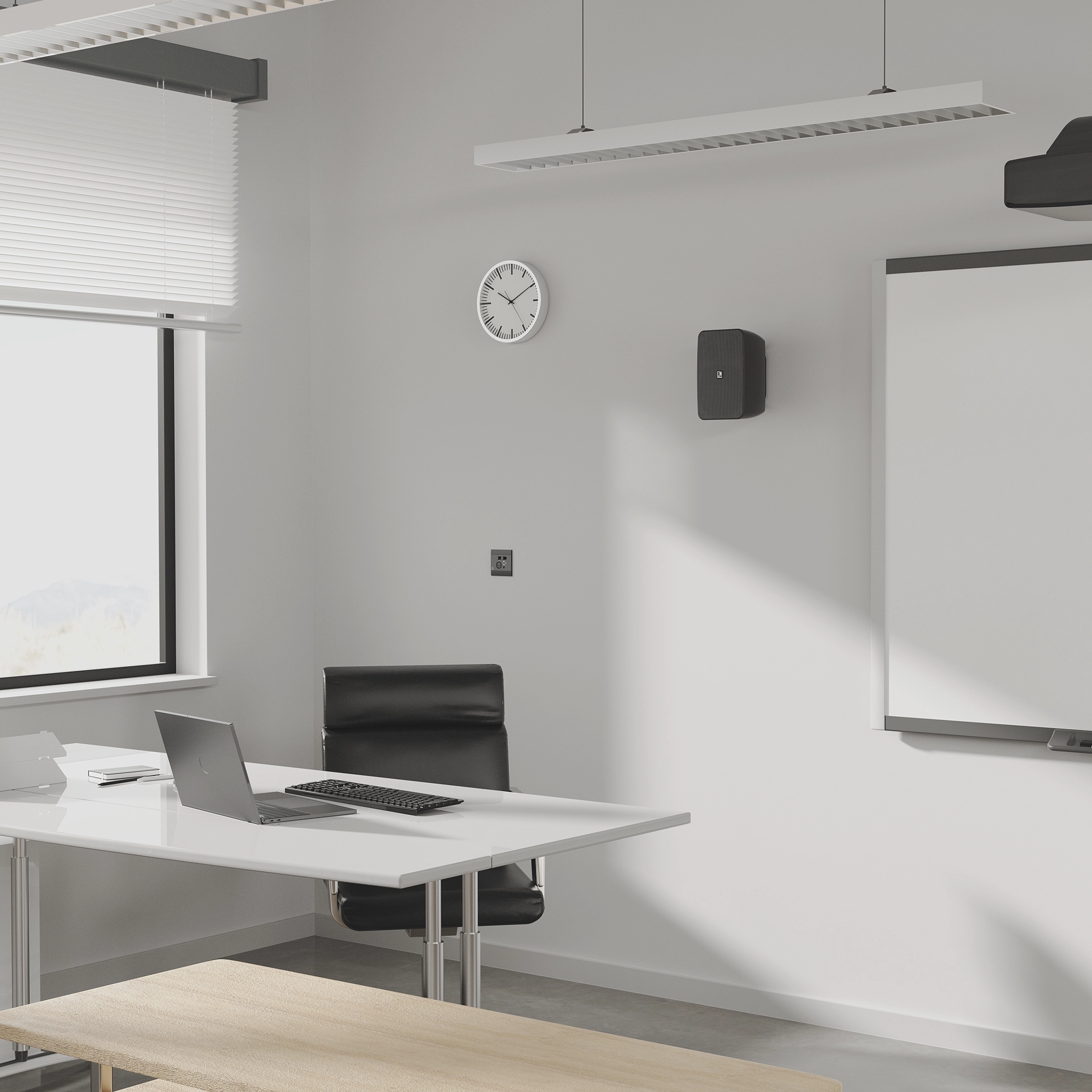 Wszechstronne możliwości montażu- Projektując nową serię głośników producent oprócz strony estetycznej położył duży nacisk na przyjazną i wszechstronne możliwości instalacji tych głośników. Standardowo dołączony system uchwytów umożliwia montaż głośników blisko ściany z nachyleniem do 45, a nawet w narożnikach. Opcjonalny zestaw kątowych uchwytów montażowych MBK455 umożliwia w razie potrzeby dodatkowe nachylenie o 90.