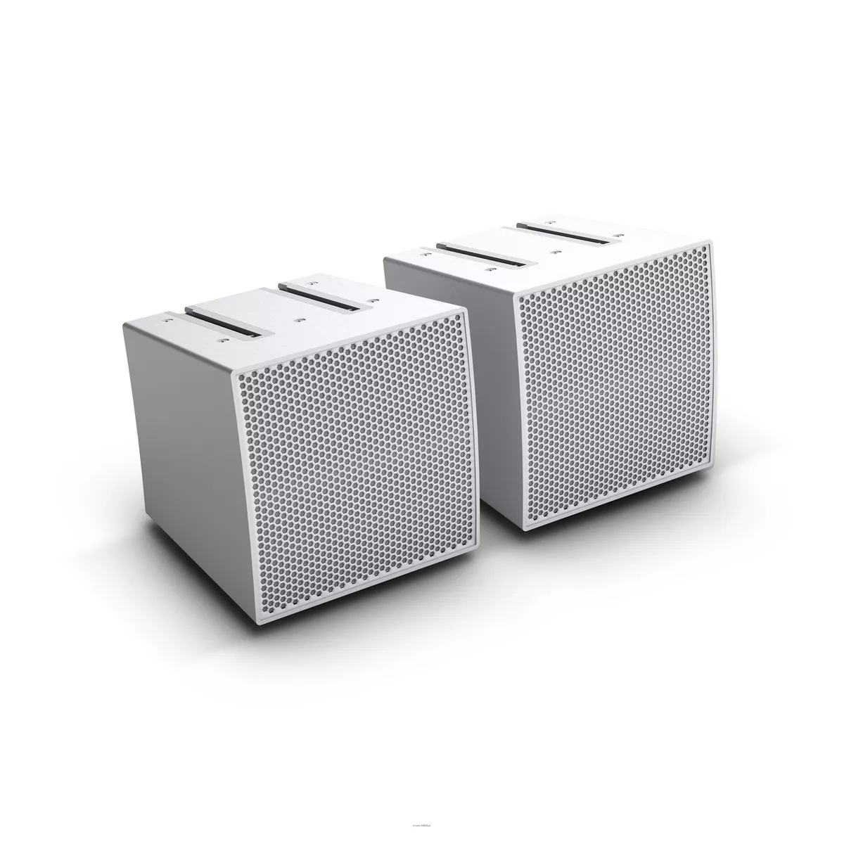 Ten zestaw akcesoriów pełni funkcję rozszerzenia lub uzupełnienia już posiadanego systemu CURV 500®. Głośniki satelitarne o wymiarach 12 x 12 cm, które wykonano z czarnego odlewanego ciśnieniowo aluminium, wytwarzają doskonały dźwięk. Możliwe jest to dzięki zastosowaniu 4-calowego przetwornika średniotonowego i trzech 1-calowych przetworników wysokotonowych. Opracowana przez firmę LD Systems technologia WaveAhead® polega na ułożeniu w pionie przetworników wysokotonowych przed pełnozakresowym prz etwornikiem o wysokiej wydajności, co przekłada się na osiągnięcie idealnego miksu dźwiękowego i emisyjnego. Kąt emisji dźwięku w poziomie wynosi aż 110 stopni i w przypadku każdego głośnika satelitarnego został ograniczony do 10 stopni w pionie, co zmniejsza odbicia od sufitów i podłóg. Pasywna zwrotnica głośnikowa optymalnie dzieli zakres częstotliwości przy 2500 Hz. Dzięki opatentowanemu mechanizmowi wtyczek SmartLink® można błyskawicznie połączyć w sposób bezprzewodowy aż do 4 głośników sate litarnych w jedną całość. Wytrzymała kratka metalowa z obiciem z materiału akustycznego chronią przetworniki wytrzymałych głośników satelitarnych, z których każdy charakteryzuje się impedancją na poziomie 16 Ω i wagą 1,73 kg. Powierzchnia jest powlek ana proszkowo i odporna na uszkodzenia. Czarny mat dodaje głośnikom elegancji. Do montażu w stałych instalacjach przewidziano połączenie śrubowe M3, służące do przymocowania liny zabezpieczającej.