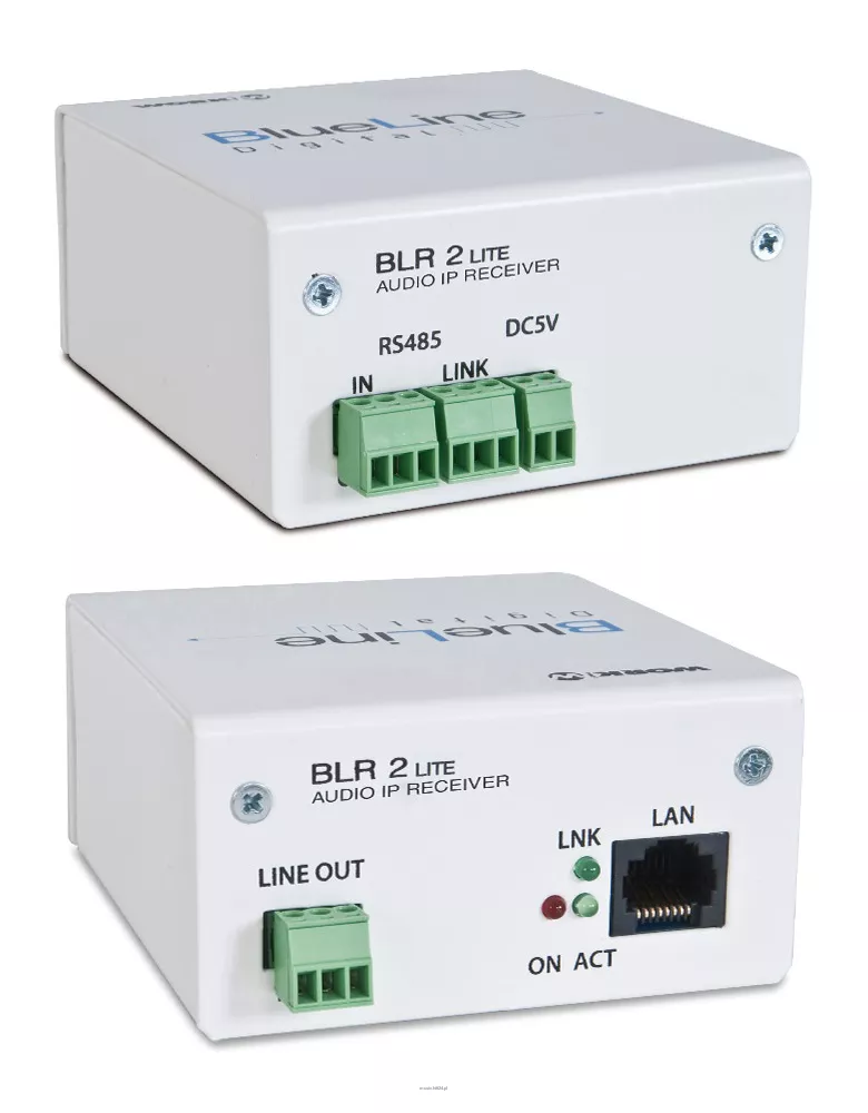 Uproszczona wersja odbiornika internetowego BLR 2. Brak możliwości podłączenia sterownika BL-C1. Dostępne zdalne sterowanie poprzez polecenia RS485 - m.in. wybór kanału, poziom sygnału, itp. Sterowanie funkcjami poprzez sieć Ethernet (za pomocą komputera PC, smartfona lub tabletu). Zasilanie poprzez złącze PoE i/lub zewnętrzny zasilacz.