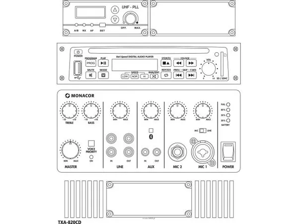 - Odtwarzacz CD/MP3 z mechanizmem wpustowym i systemem