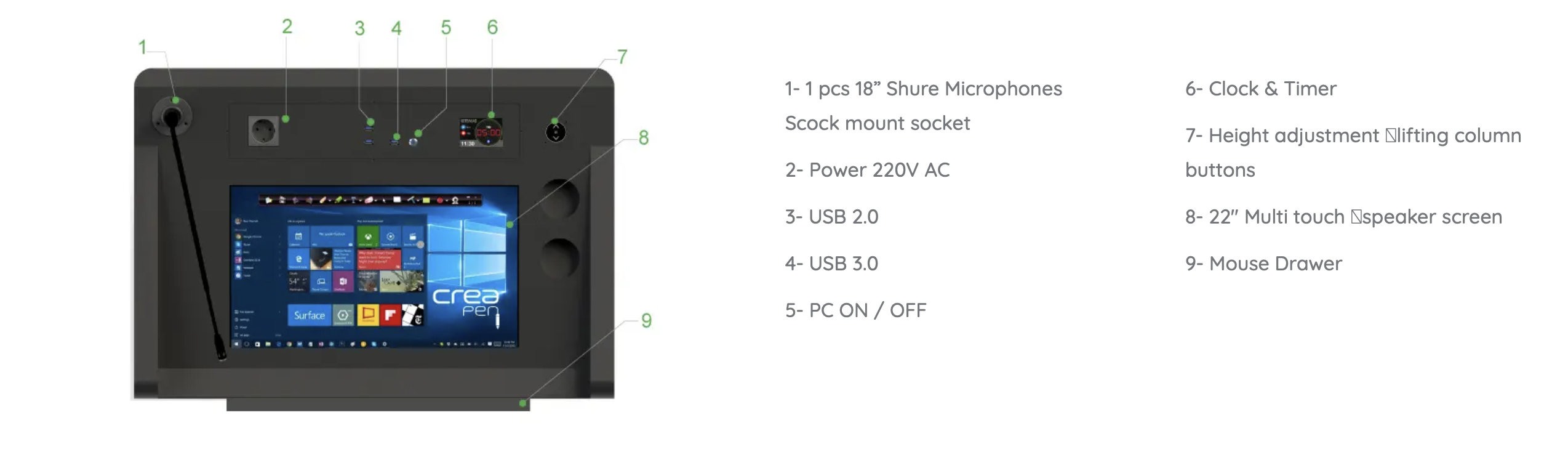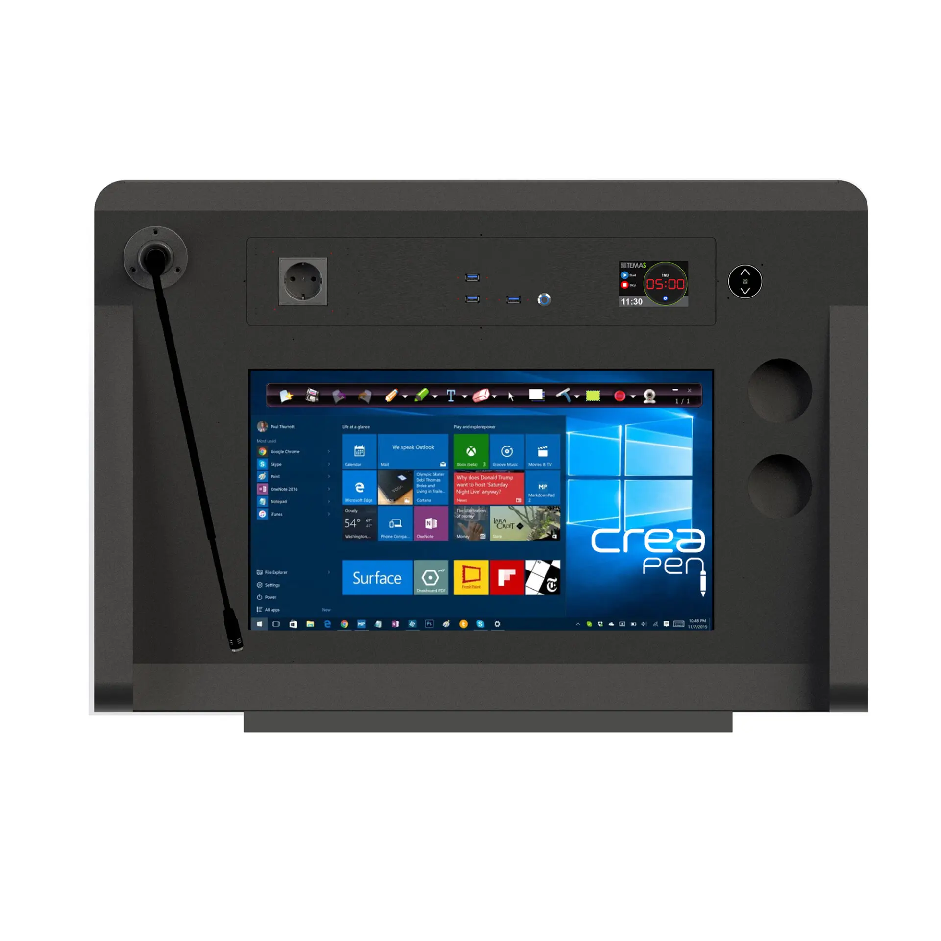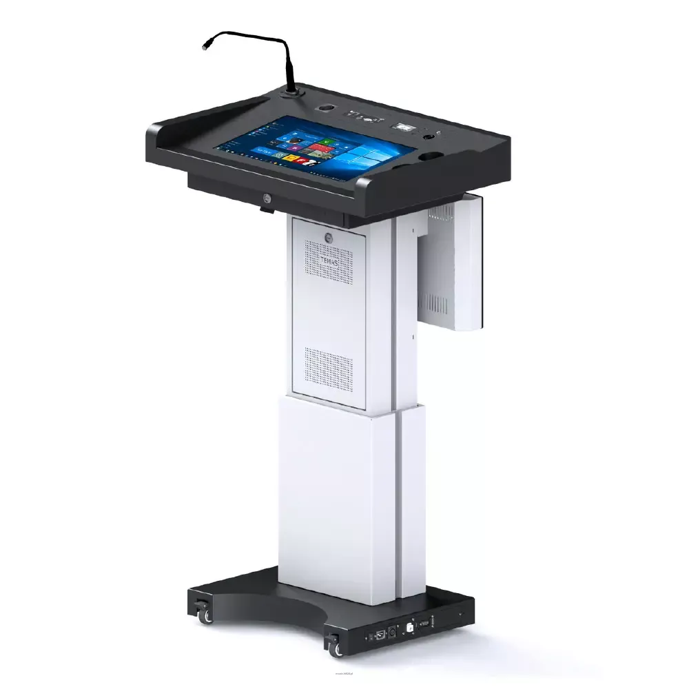 DL22A-M to nowoczesna, ekonomiczna mównica cyfrowa zaprojektowana z myślą o krótkich prezentacjach i wystąpieniach — idealna do sal konferencyjnych w hotelach, spotkań prasowych oraz niewielkich sal szkoleniowych.